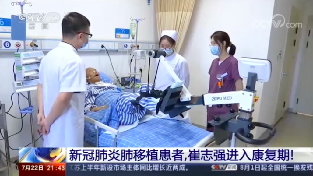首例新(xīn)冠肺炎肺移植患者,進入康複期使用(yòng)泽普醫(yī)療床旁下肢康複機進行(xíng)康複,央視(shì)《新(xīn)聞1+1》新(xīn)聞節目報(bào)道(dào)。
