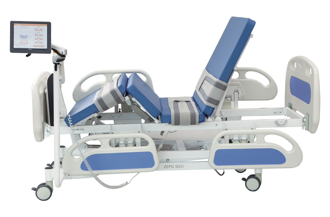 電動康複床不(bù)僅支持日常的(de)護理(lǐ)應用(yòng)也可為(wèi)新(xīn)冠肺炎患者提供站立位的(de)康複訓練,可以降低卧床所緻的(de)獲得性衰弱發生。